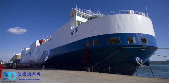 “该船是目前世界最大、最先进的新一代环境友好型货物滚装船,其总长238米,型宽34米,航速20.8节,拥有7800米车道承载能力”