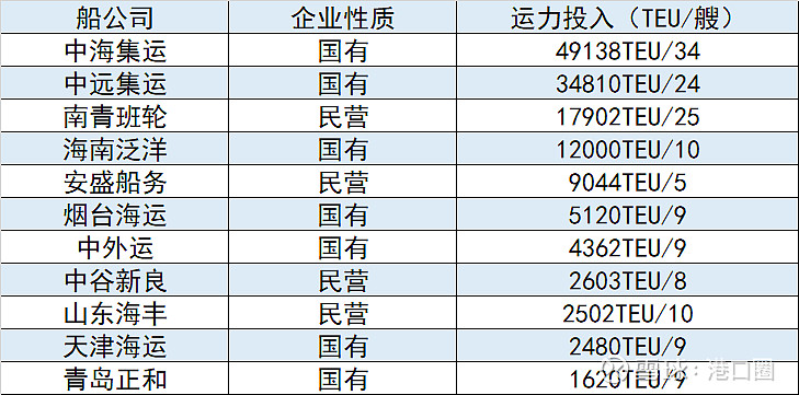 可以看出,泛亚航运、安通控股、中谷海运三家班轮公司的内贸运力份额已超过80%。