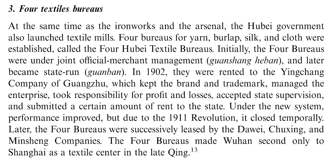 【4】湖北省纺织工业志编纂委员会编:《湖北纺织工业志》,中国文史出版杜1991年版,第2—3页。