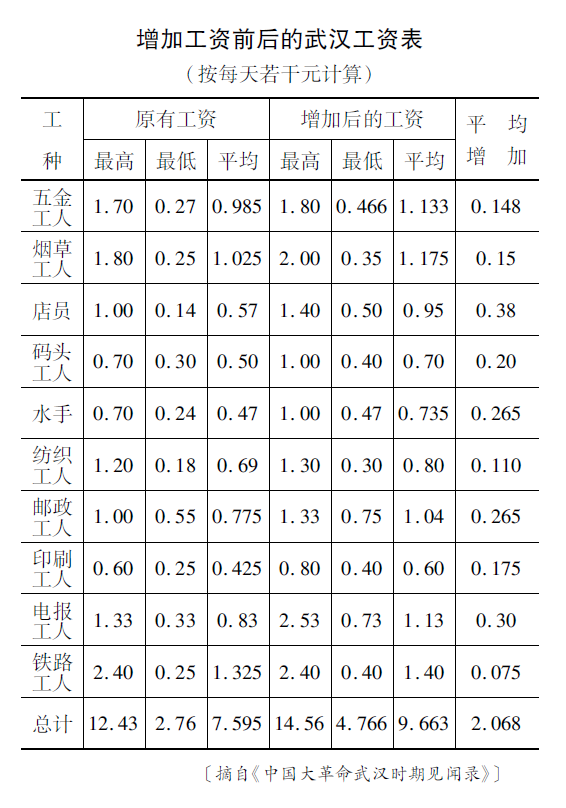 这两本回忆录对大革命时代的记述,主要是工人运动,那我们便沿着他们的记述往下看吧:张金保曾经担任过第六届中央委员、中央妇委书记。上世纪二十年代中期,她从鄂城乡下来汉口第一纱厂做工,一个月后,“领到半个月的工资——七块大洋,另外半个月的工资被厂里当作押金扣下了。我拿着钱心里高兴极了,因为这意味着我每个月可以挣十四块钱,可以勉强糊口养家。”第二年,张金保一人看管两台织布机,月薪30多块钱。“这样,我的生活好些了,开始有了点积蓄。”