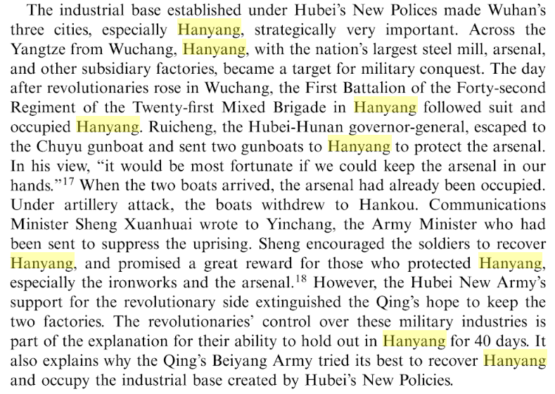 (Hanyang Arsenal) It was China's largest arsenal in the late Qing and early republican era, surpassing the Jiangnan, Nanjing, and Tianjin arsenals. By 1909, it produced 130k rifles and 1000 cannon guns and 1000 gun carriages.