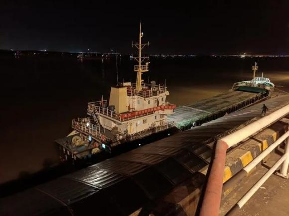 10月19日,全国首制、服务长江中游特定航线的江海直达散货船“江海直达19”轮,搭载着1.18万吨美国进口玉米,从浙江舟山港抵达武汉阳逻港一期码头。